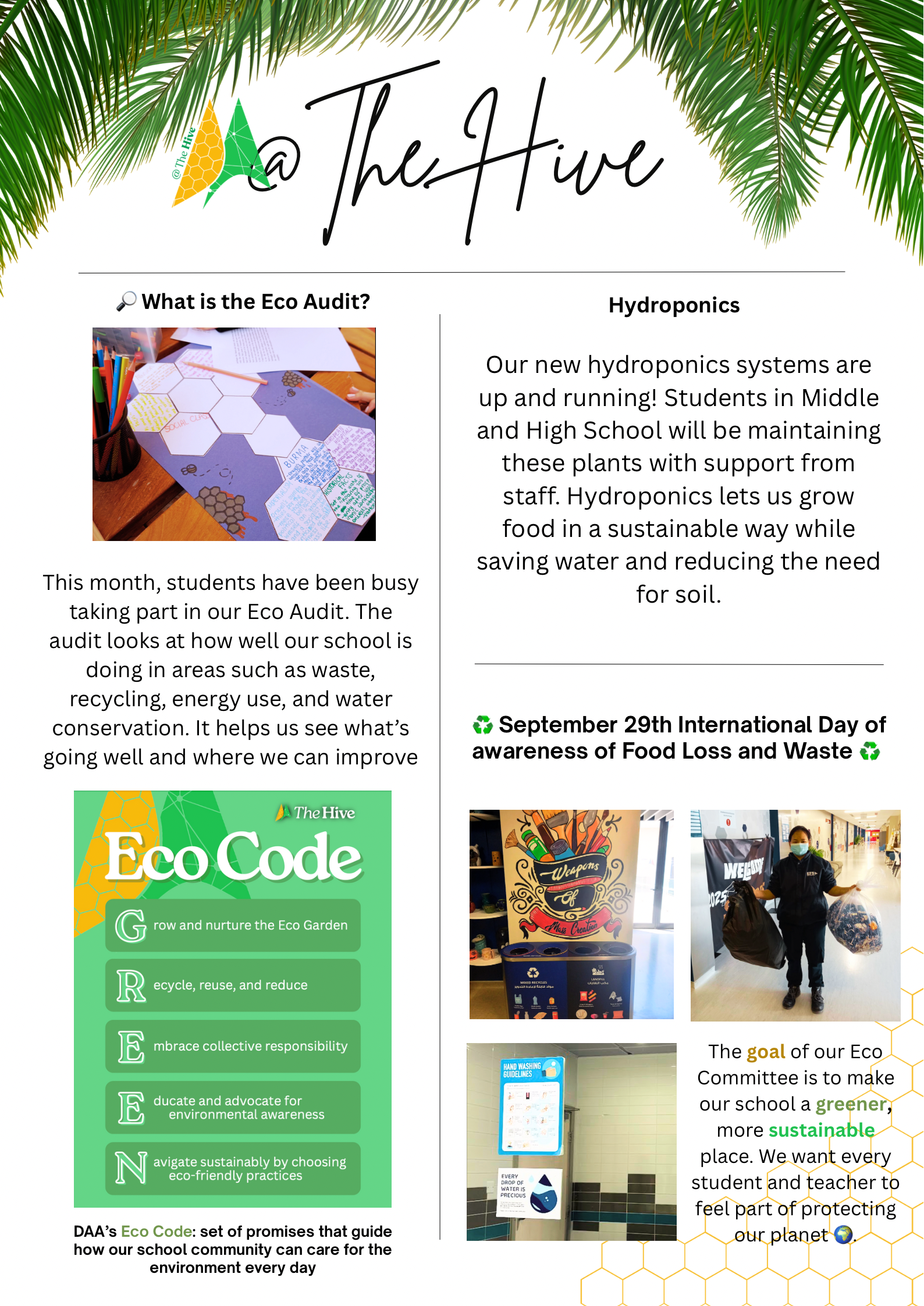Led the creation and publication of the Eco-Committee newsletter, showcasing strong editorial leadership and environmental journalism skills. Coordinated content development, managed a team of student writers, and ensured timely delivery of monthly publications that raised awareness about sustainability initiatives. This publication demonstrated effective communication of environmental issues to the school community, combining research, storytelling, and design to inspire action and promote eco-conscious behavior.